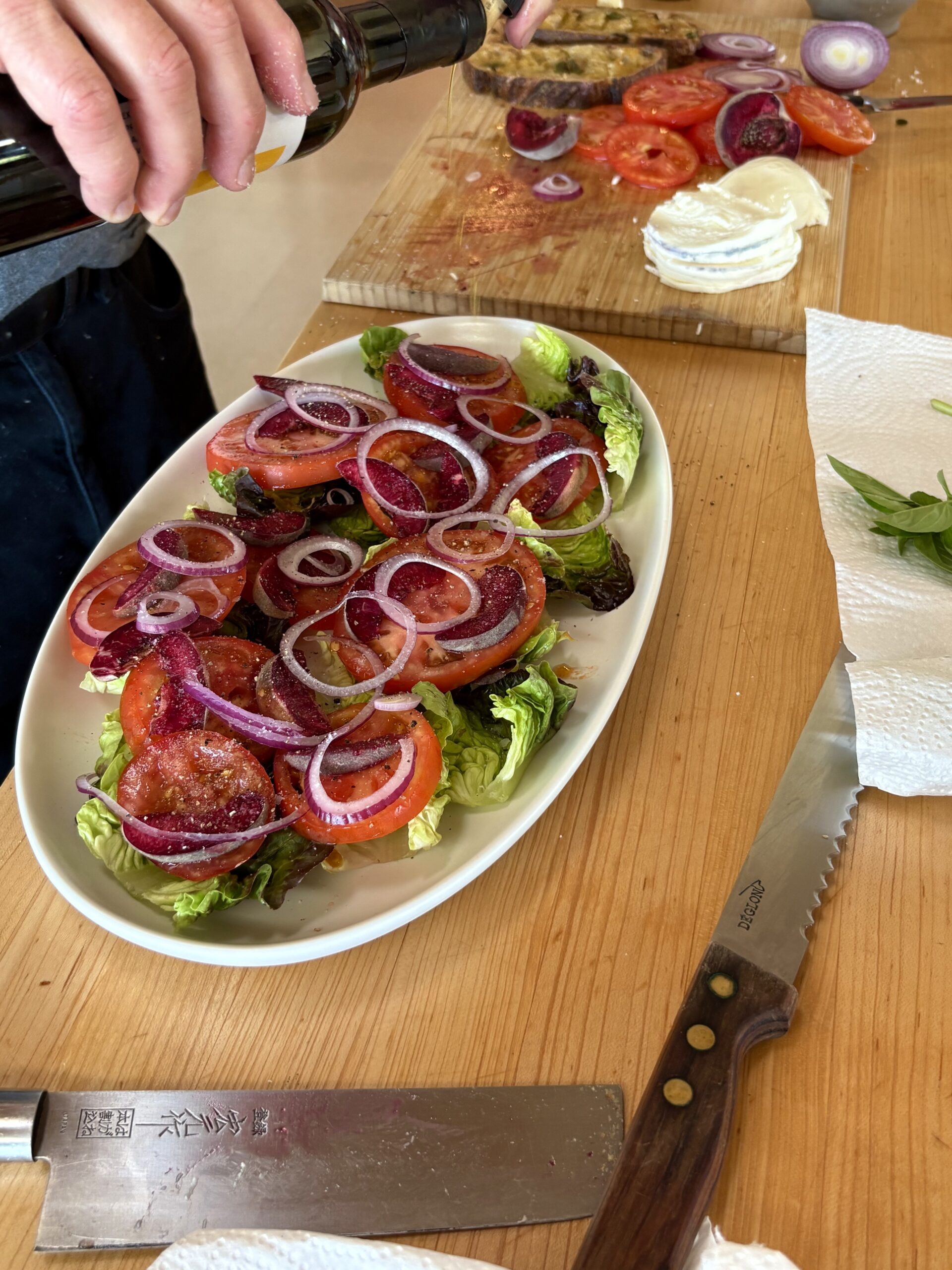 This salad was born from that moment. It’s not fussy, but it is thoughtful—built from ingredients we’ve pulled from the Sebastopol farmers market and our garden in the same afternoon. As always, our olive oil finishes it. You’ll want a good pour, and maybe a piece of warm olive bread close by.